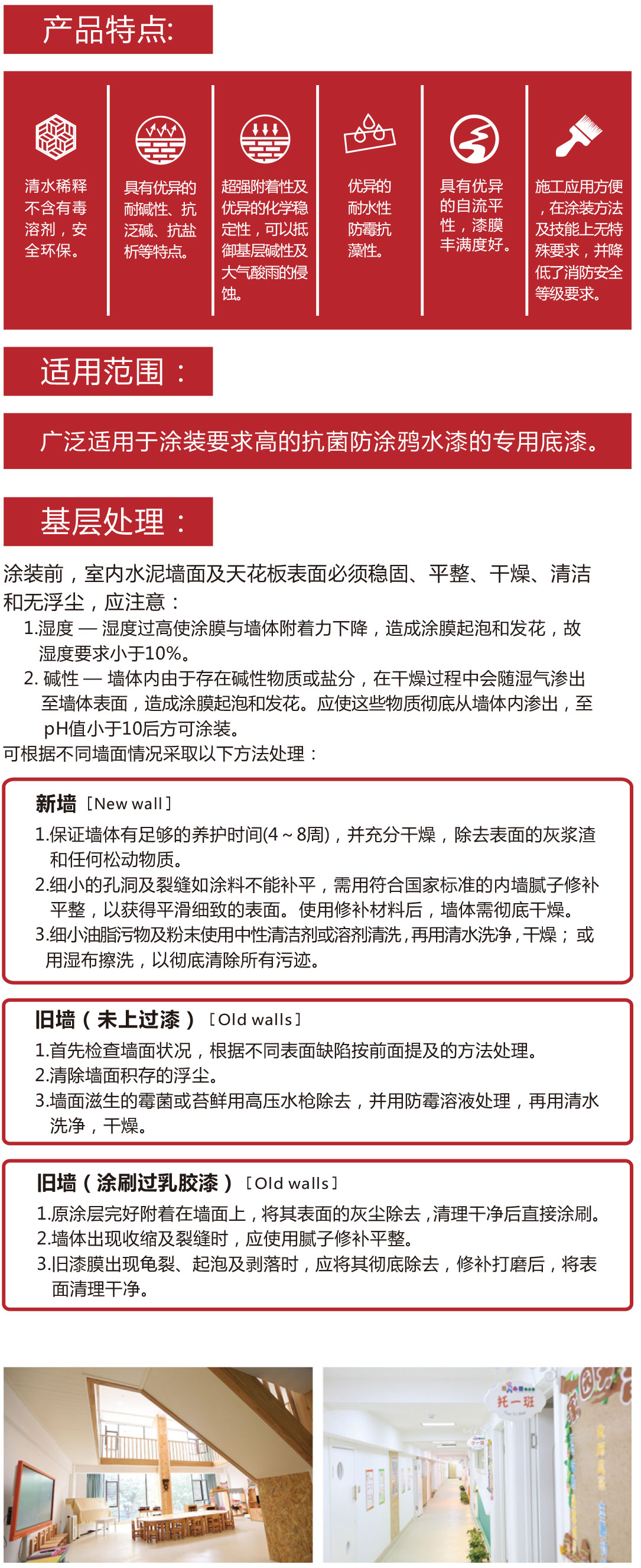 抗菌防涂鴉專(zhuān)用底漆是采用進(jìn)口水性丙烯酸乳液為成膜物質(zhì),輔以?xún)?yōu)質(zhì)顏、填料配制而成一款高檔底漆產(chǎn)品。該產(chǎn)品具有超強耐堿性、抗泛堿、抗鹽析等特點(diǎn),是一種新型的超強耐抗環(huán)保產(chǎn)品。