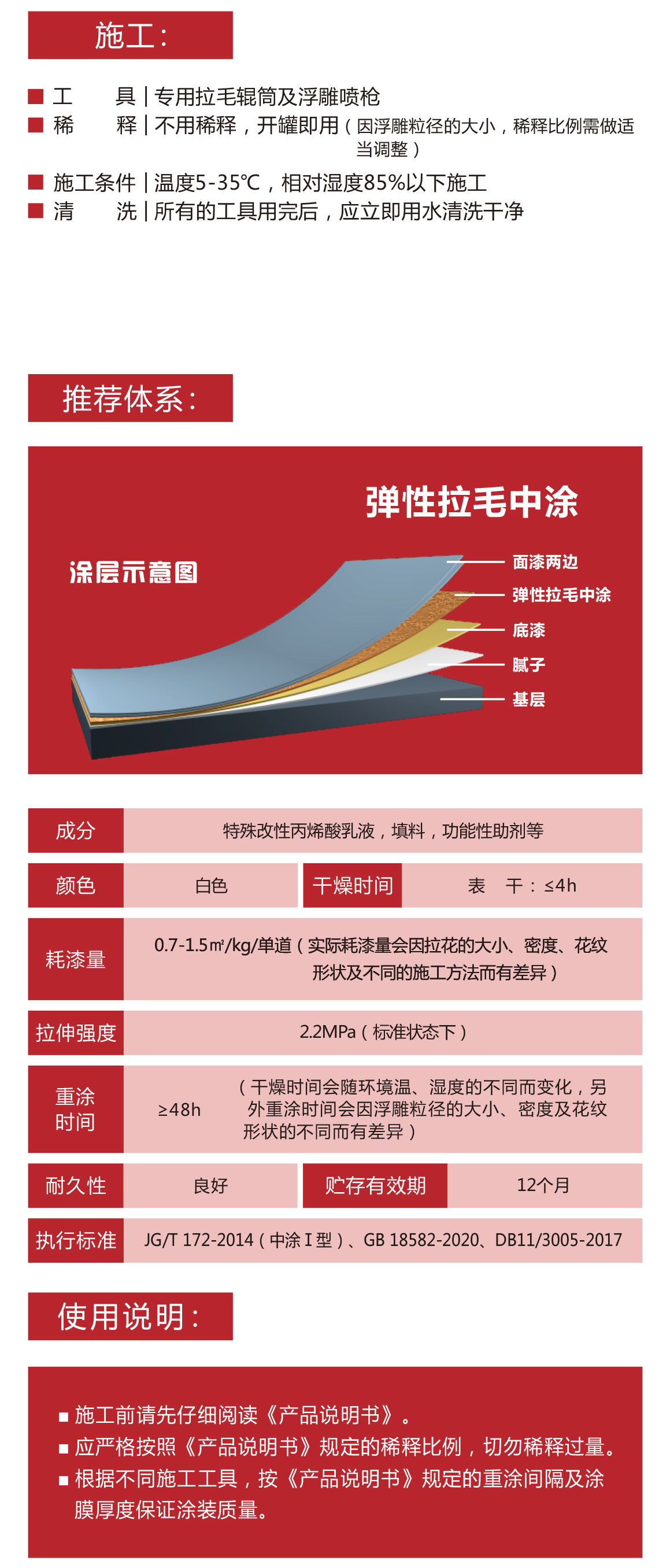 特殊改性的丙烯酸類(lèi)中層料,能為墻體提供立體裝飾效果。